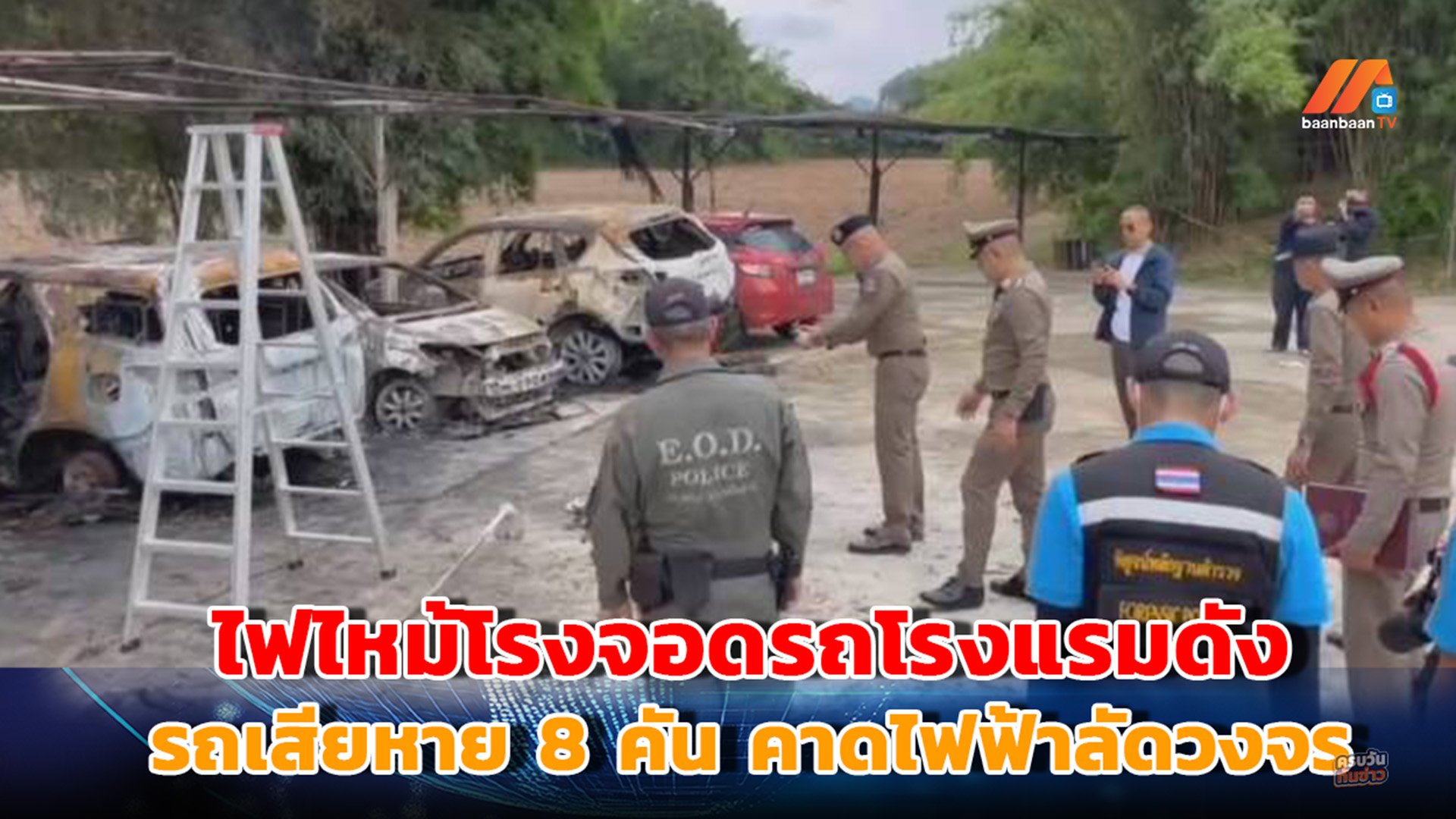เกิดเหตุเพลิงไหม้โรงจอดรถของโรงแรมชื่อดังใน อ.บ้านไร่ จ.อุทัยธานี รถยนต์ลูกค้าเสียหาย 8 คัน
