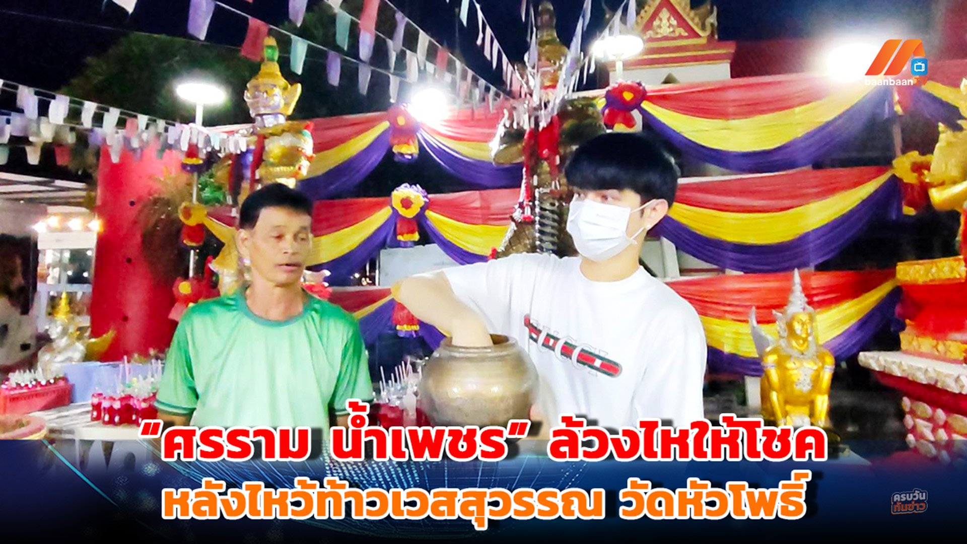 “ศรราม น้ำเพชร” ล้วงไหให้โชค หลังไหว้ท้าวเวสสุวรรณ วัดหัวโพธิ์