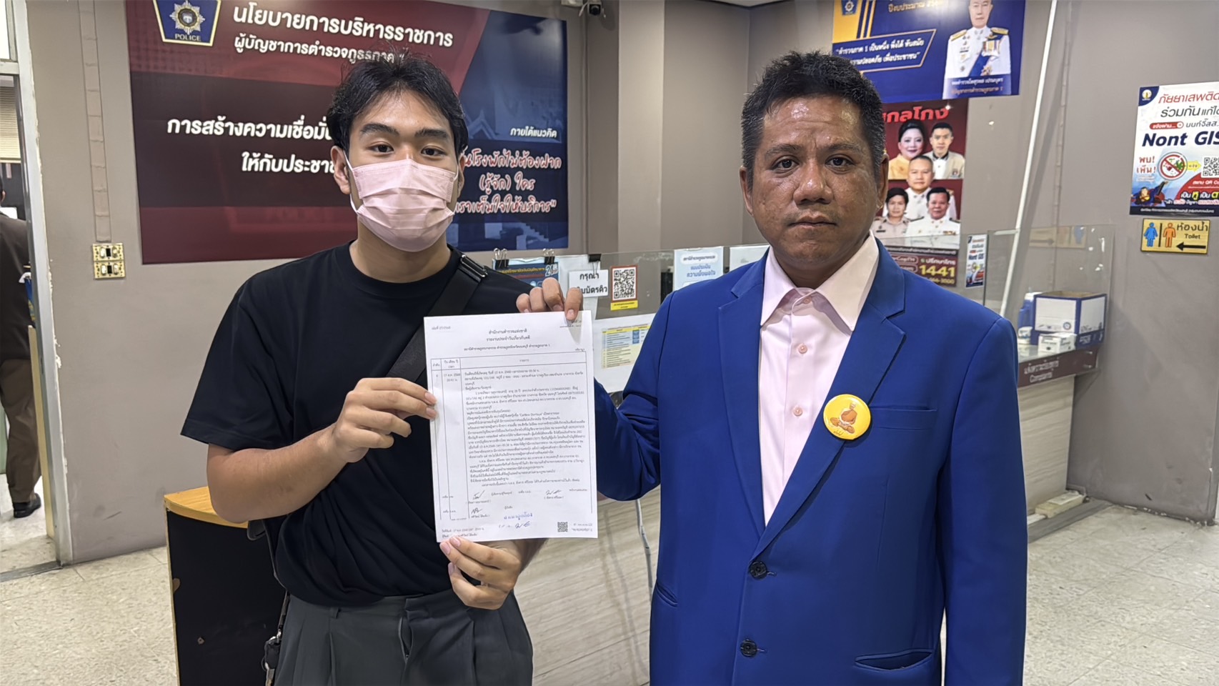 พร้อมนายกร (นามสมมติ) อายุ 27 ปี ผู้บริจาคเงิน 200 บาท เข้าแจ้งความเอาผิดหญิงผู้โพสต์ ในข้อหา