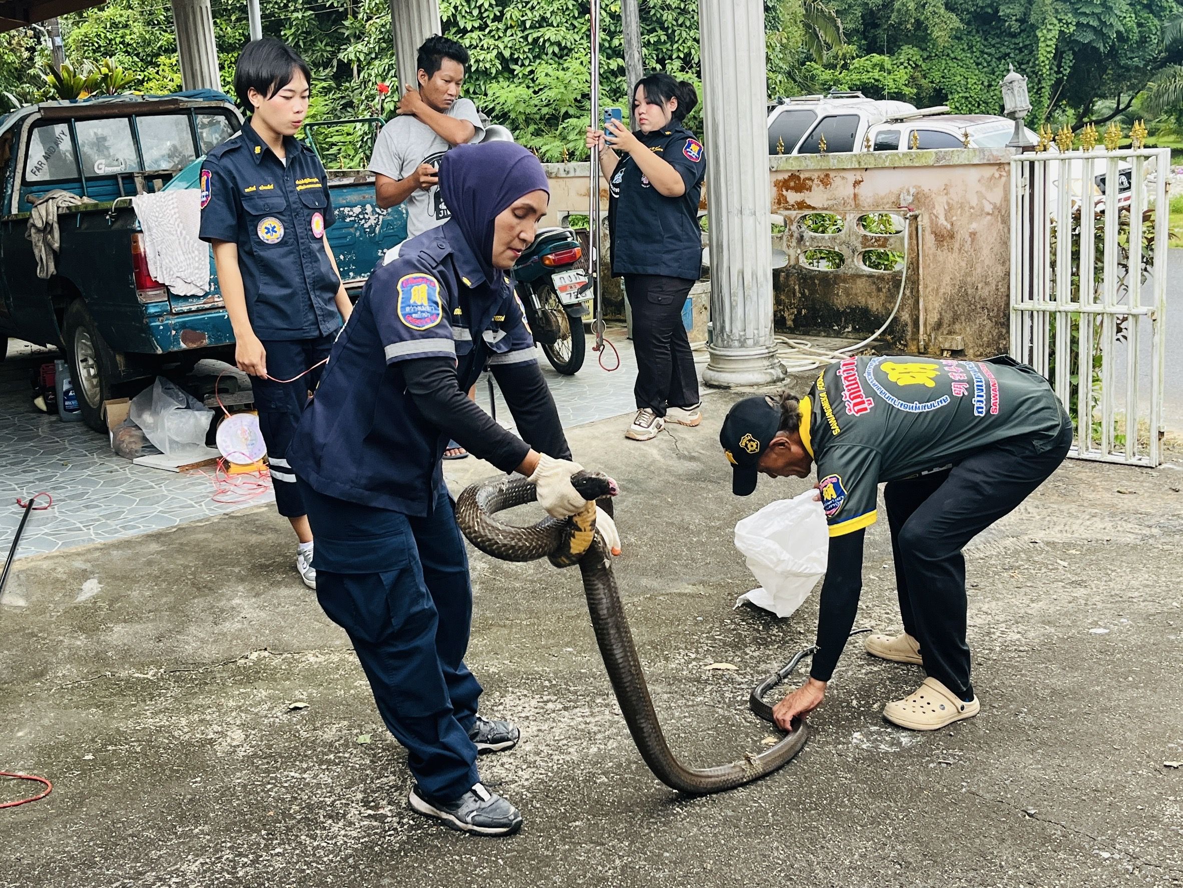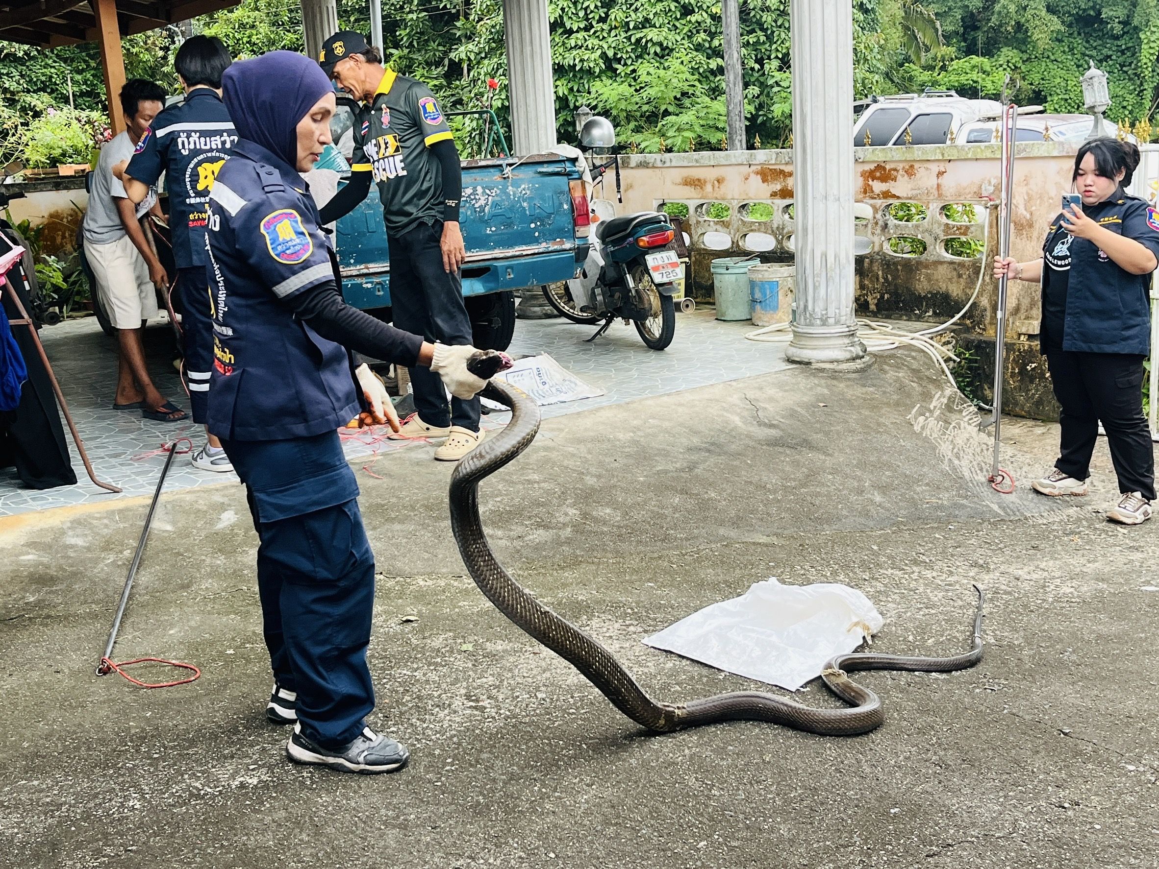 ต้องใช้เวลาเกือบ 30 นาทีในการเข้าจับงูจงอาง เนื่องจากงูมีขนาดใหญ่และดุร้าย แต่สุดท้ายสามารถควบคุมตัวได้อย่างปลอดภัย