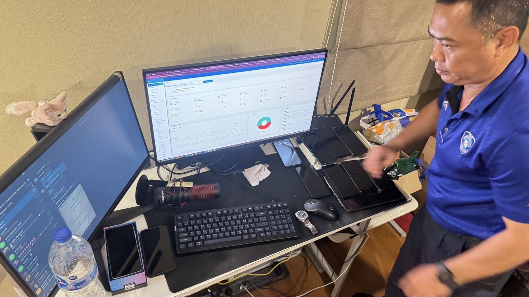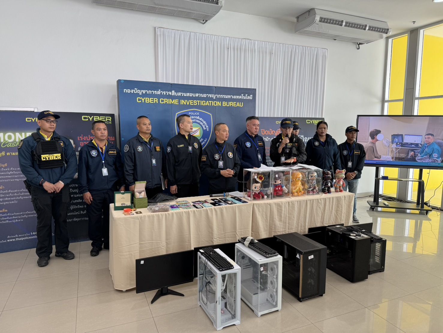 ที่กองบังคับการสืบสวนสอบสวนอาชญากรรมทางเทคโนโลยีที่ 2 เจ้าหน้าที่ตำรวจไซเบอร์ นำโดย พล.ต.ท.ไตรรงค์ ผิวพรรณ