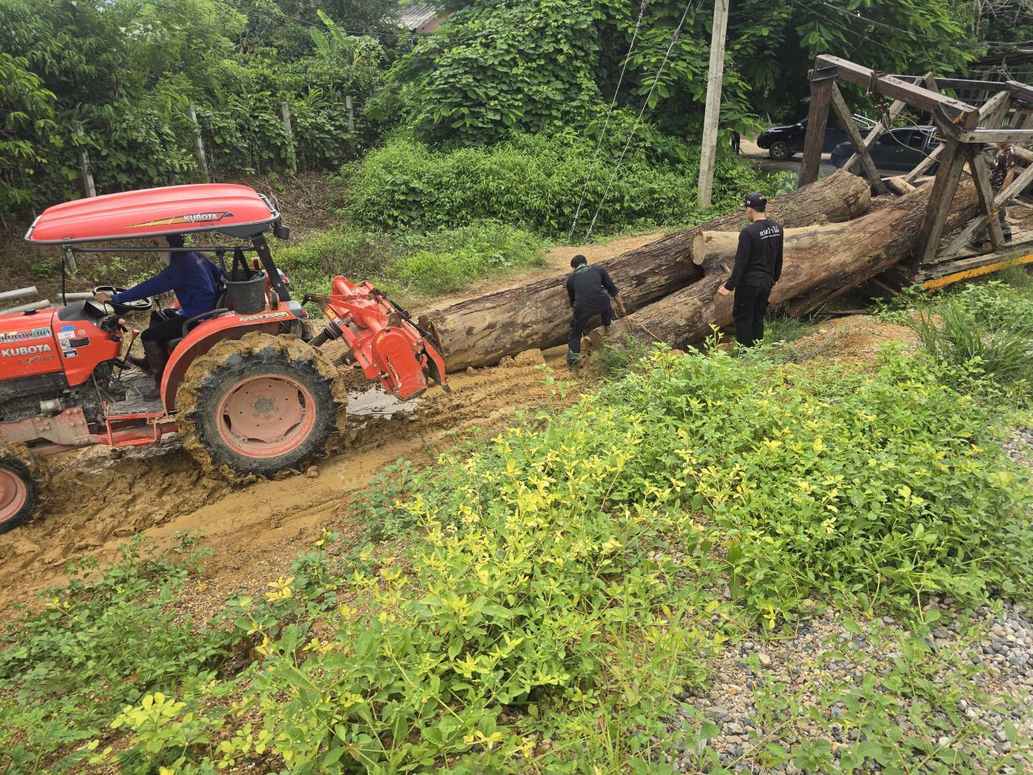 ลำปาง จับขบวนการมอดไม้ ยึดไม้ตะเคียนหนู 10 ท่อน พร้อมรถ 6 ล้อและแบคโฮ