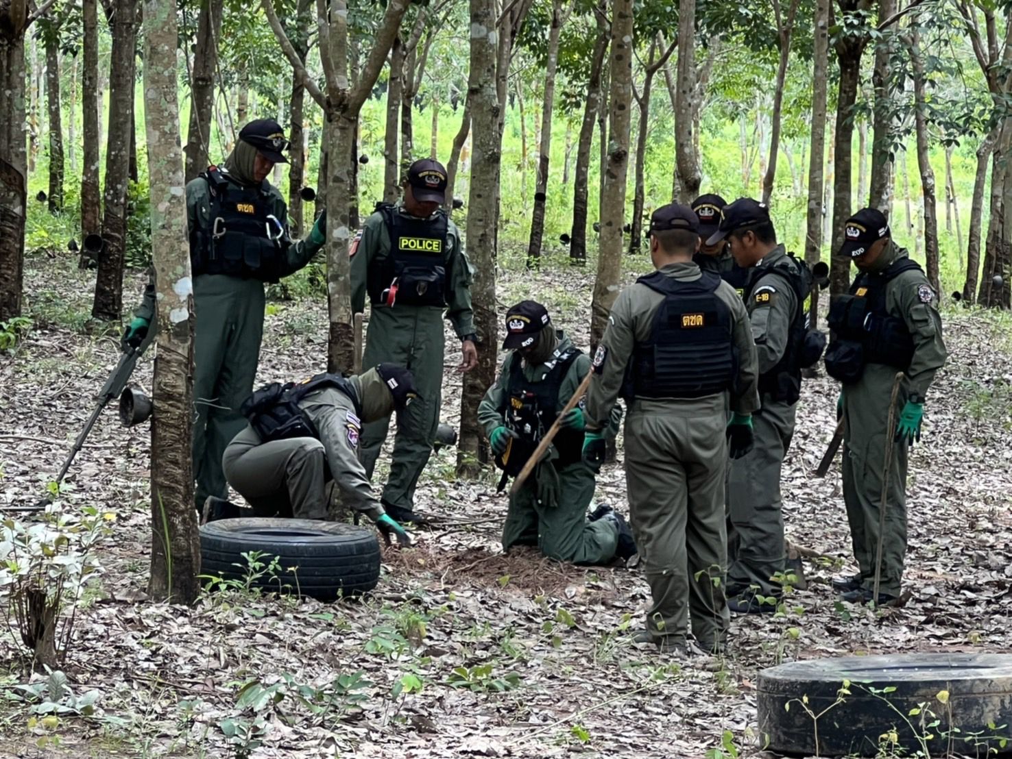 EOD เร่งทำลายกระสุนปืนใหญ่ในสวนยางและป่าชุมชน ป้องกันอันตรายชาวบ้าน