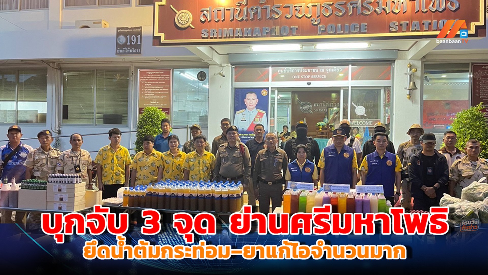 บุกจับ 3 จุด ย่านศรีมหาโพธิ ยึดน้ำต้มกระท่อม–ยาแก้ไอจำนวนมาก