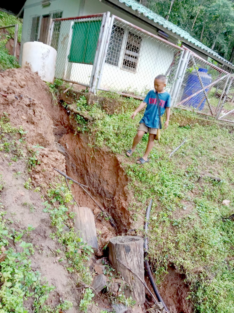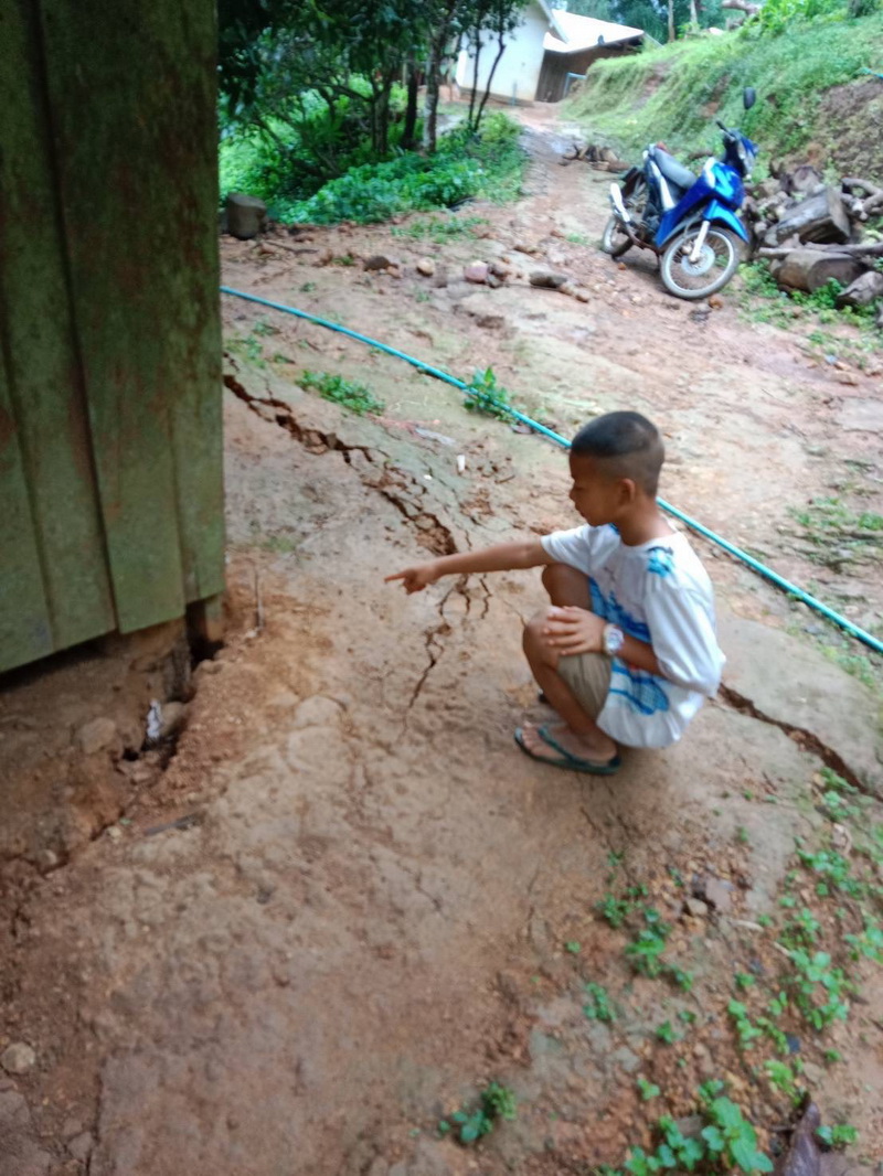 พบดินแตกร้าวยาวหลายจุด ใกล้บ้านพักครู โรงไฟฟ้าโซลาร์ และโรงครัว เสี่ยงต่อการถล่มหากฝนตกซ้ำ
