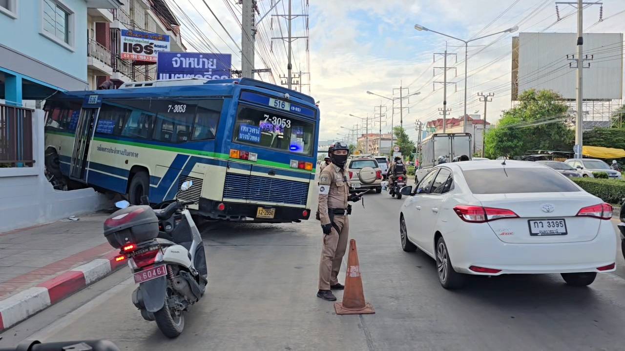 เกิดเหตุรถโดยสารประจำทางปรับอากาศสาย 516 เทเวศน์บางบัวทอง เสียหลักพุ่งชนกำแพงรั้วอู่ ขสมก.
