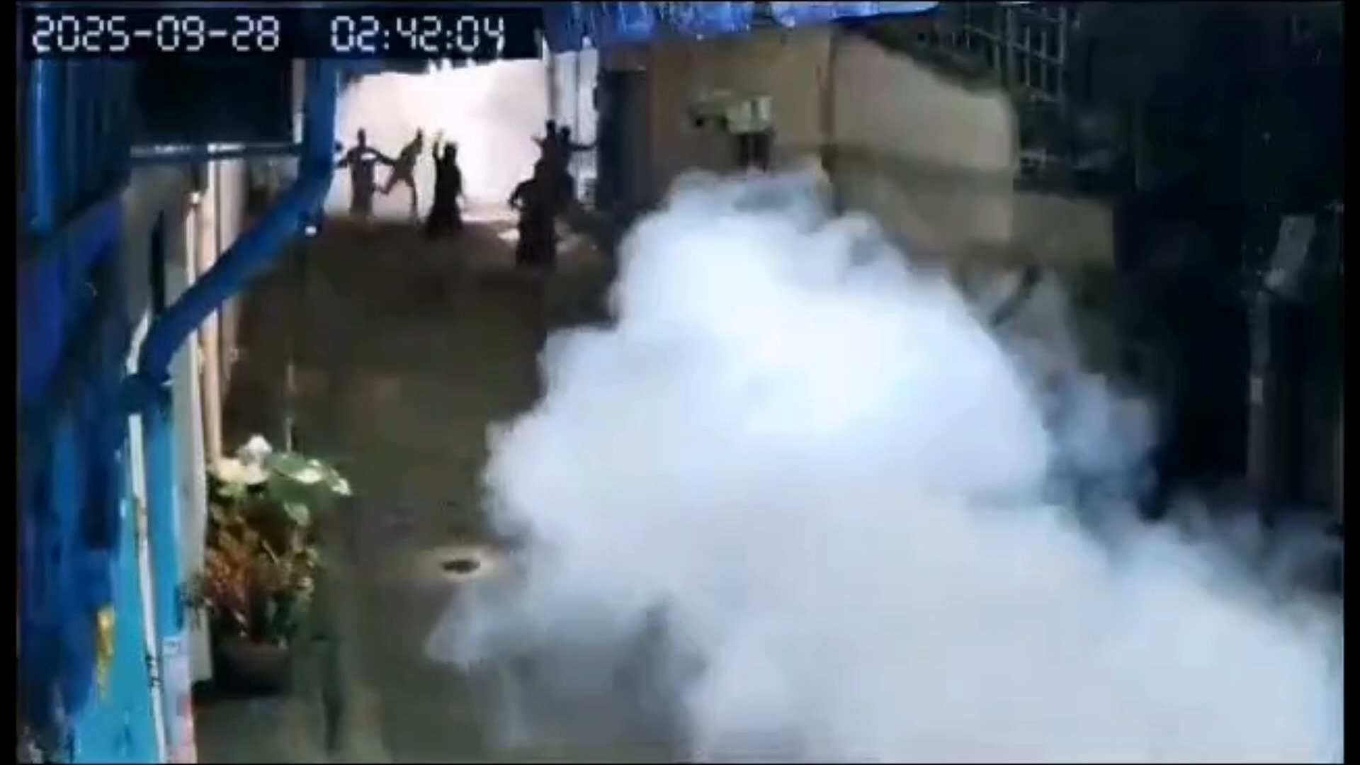 ทันทีที่เจอกัน ทั้งสองกลุ่มเปิดฉากปาระเบิดใส่กัน เสียงดังสนั่นกลางดึก ควันขาวคลุ้งเต็มพื้นที่