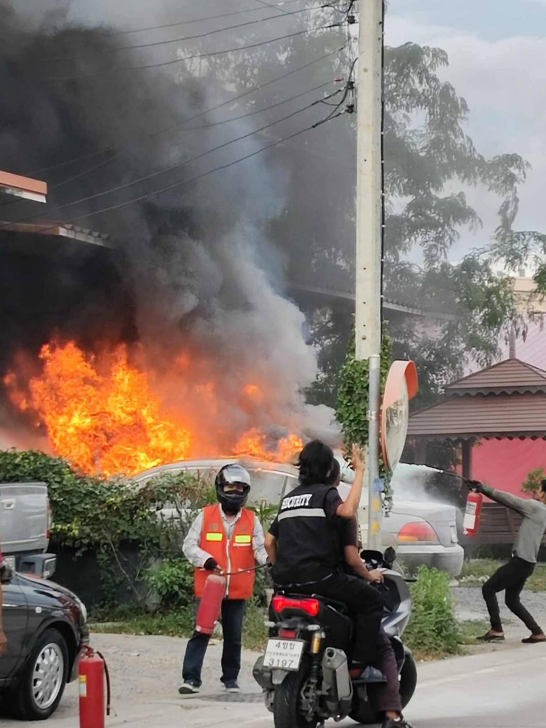แต่เมื่อเปิดประตูรถกลับมีควันฟุ้งเต็มห้องโดยสาร และเพียงไม่นานก็เกิดไฟลุกลามอย่างรุนแรง