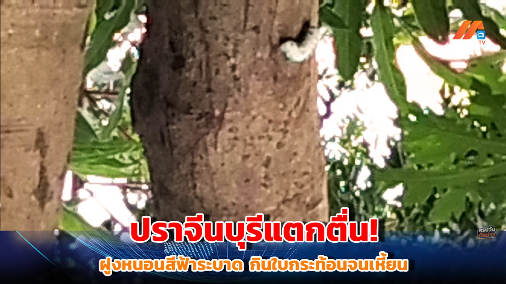 ปราจีนบุรีแตกตื่น! ฝูงหนอนสีฟ้าระบาด กินใบกระท้อนจนเหี้ยน