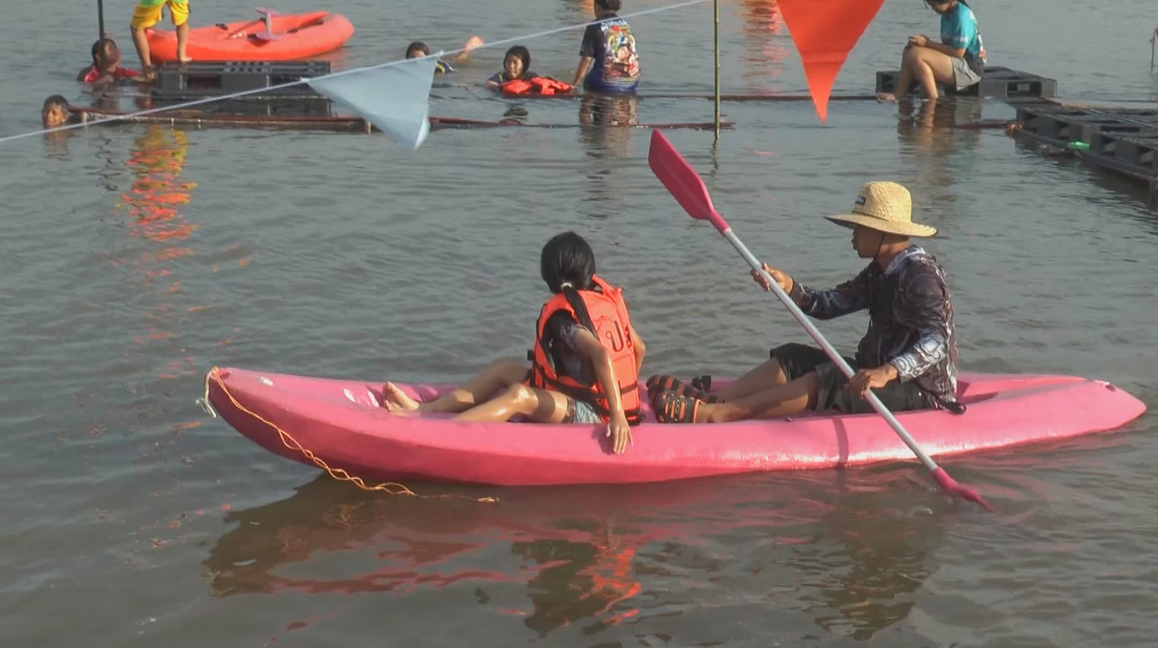 พร้อมจัดหาเรือแคนู 10 ลำ และเสื้อชูชีพไว้บริการฟรีให้ผู้ที่อยากพายเรือหรือเล่นน้ำคลายร้อน ท่ามกลางบรรยากาศคล้ายทะเลสาบน้ำจืดขนาดใหญ่