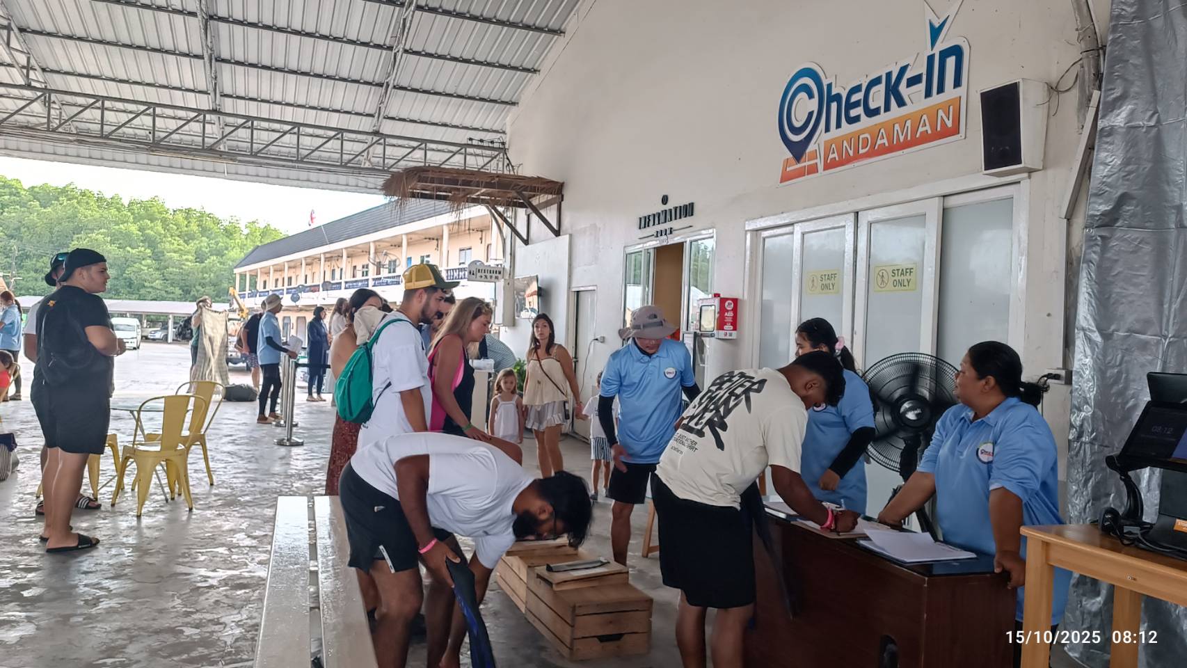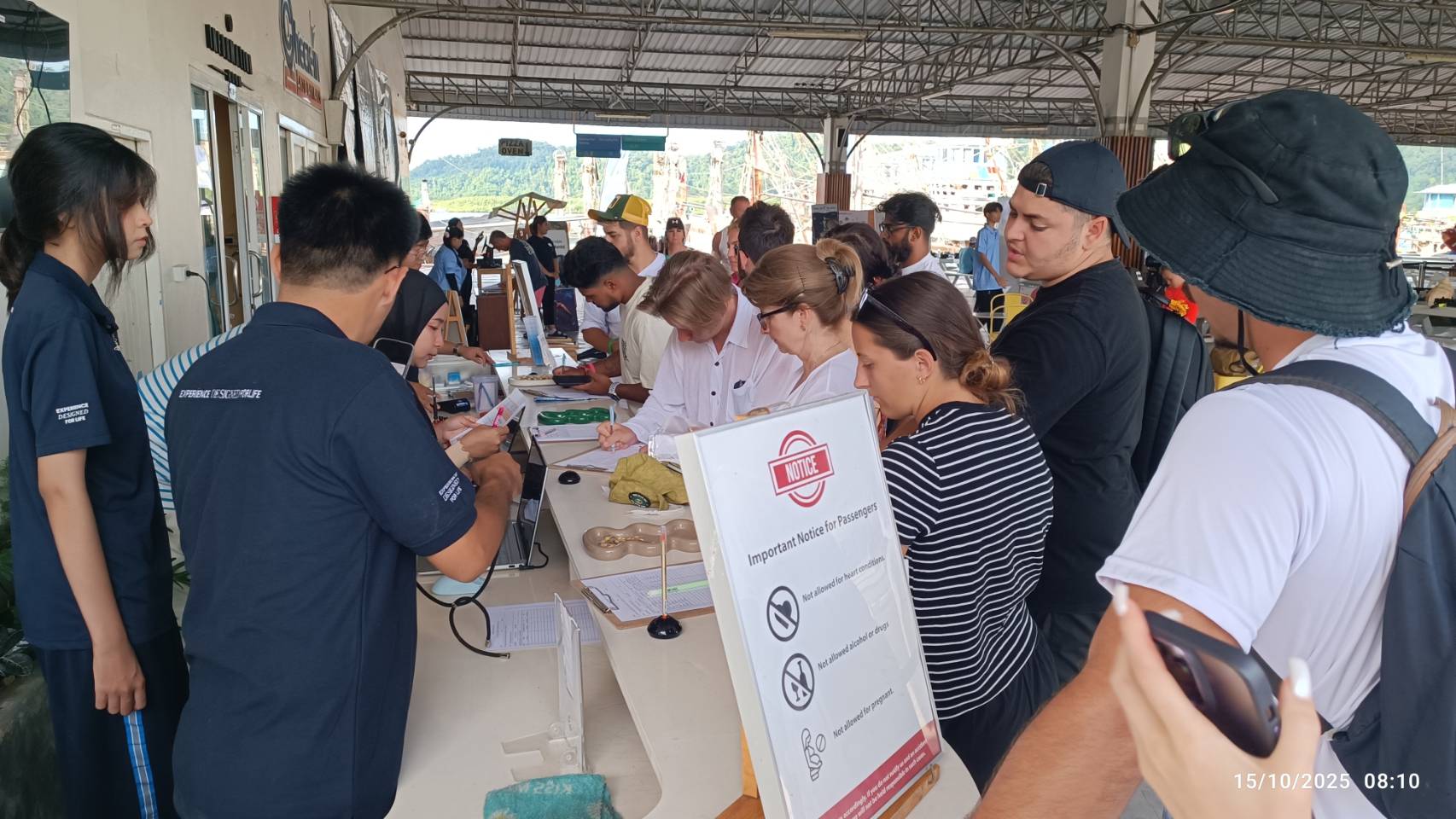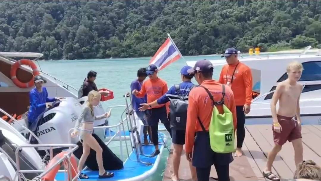 นักท่องเที่ยวทั้งชาวไทยและต่างชาติหลั่งไหลมาขึ้นเรือเพื่อชมความงามของทะเลอันดามัน ที่ขึ้นชื่อเรื่องน้ำทะเลสีฟ้าใส