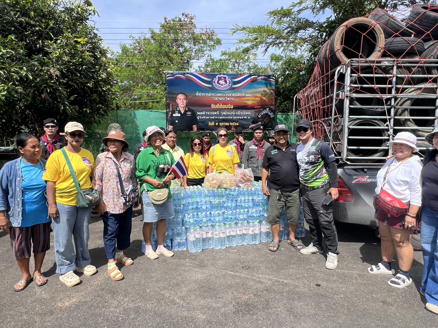 และน้ำดื่มกว่า 300 แพ็ก มอบให้ทหารบก ทหารพราน และตำรวจตระเวนชายแดนที่ปฏิบัติหน้าที่รักษาอธิปไตยตามแนวชายแดนไทยกัมพูชา ตั้งแต่ฐานภูผีจนถึงภูมะเขือ