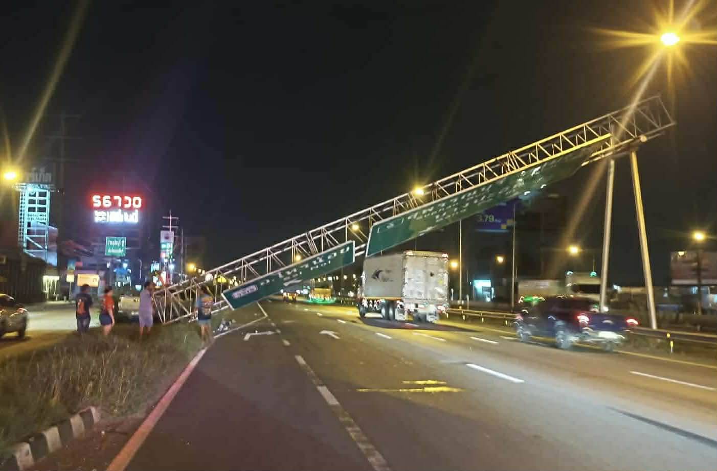 ตำรวจทางหลวงและเจ้าหน้าที่เร่งนำเครนมารื้อป้ายออก เปิดการจราจรได้ตามปกติ ส่วนคนขับหลบหนีจากที่เกิดเหตุ