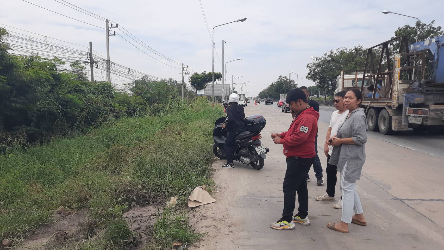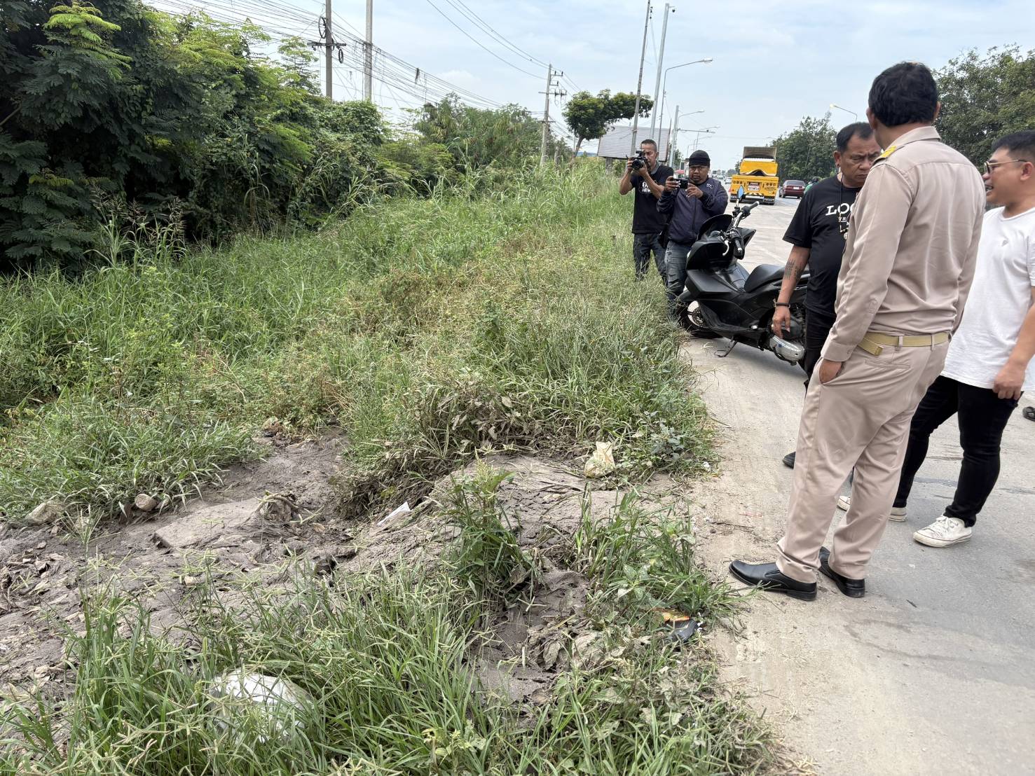 แอบนำสิ่งปฏิกูลมาทิ้งริมถนนสาย 345 ใกล้ปั๊มน้ำมัน ปตท. ทำกลิ่นเหม็นฟุ้งทั่วพื้นที่