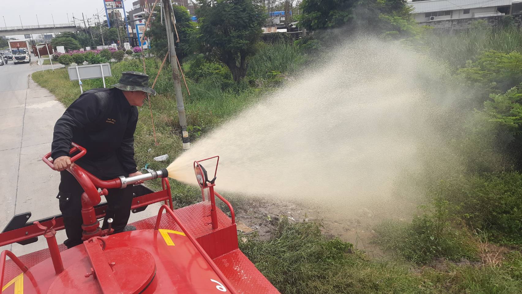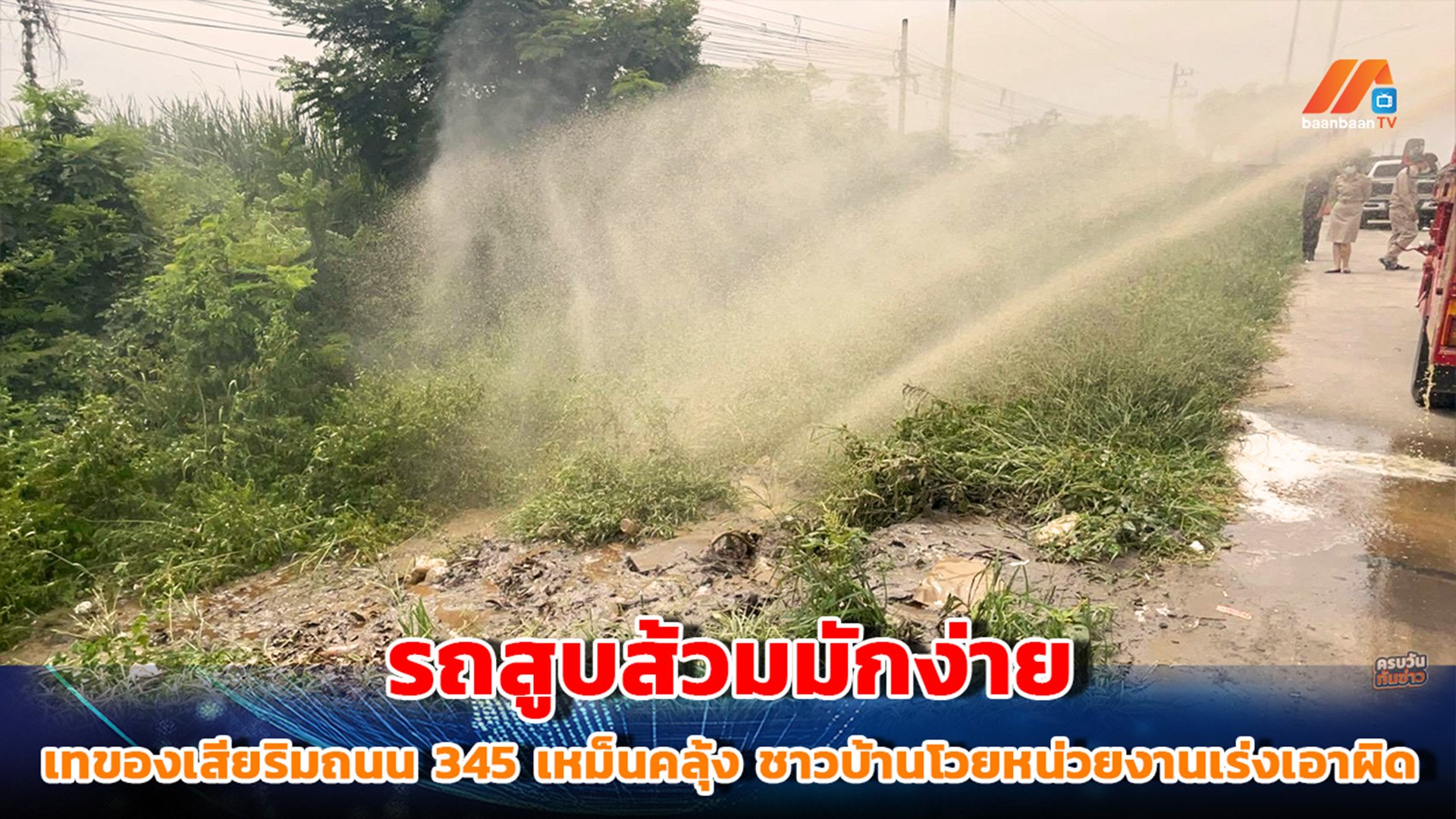 รถสูบส้วมมักง่าย เทของเสียริมถนน 345 เหม็นคลุ้ง ชาวบ้านโวยหน่วยงานเร่งเอาผิด