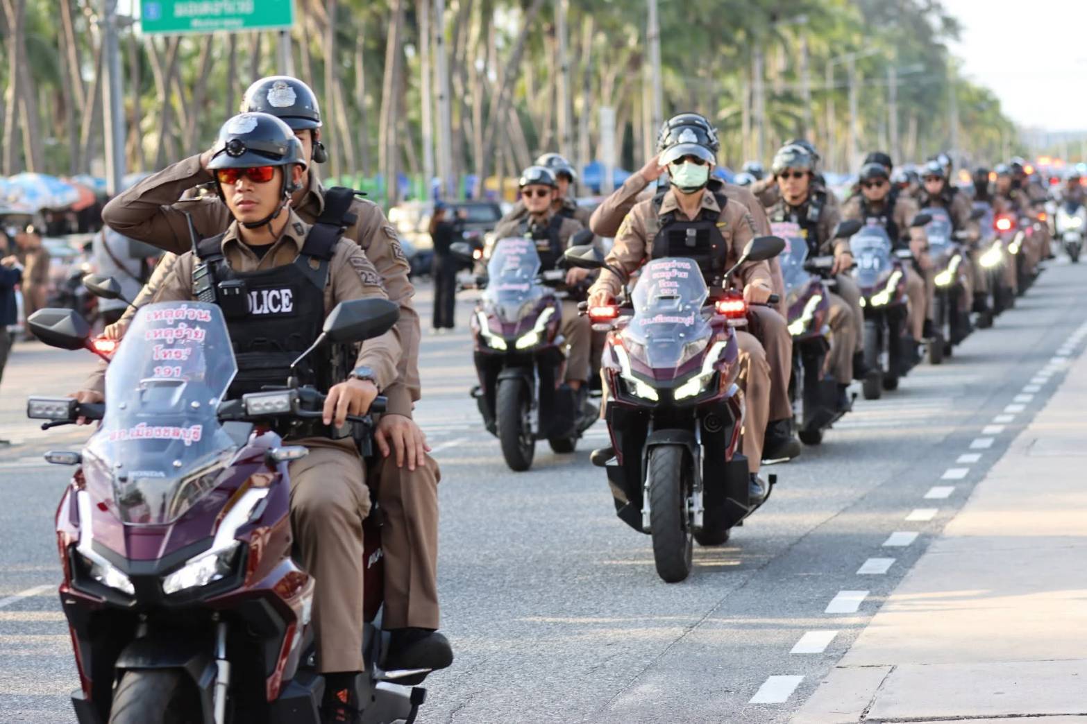 ปล่อยแถวดูแลความปลอดภัยและอำนวยความสะดวกด้านการจราจร บริเวณชายหาดบางแสน ตำบลแสนสุข อำเภอเมืองชลบุรี
