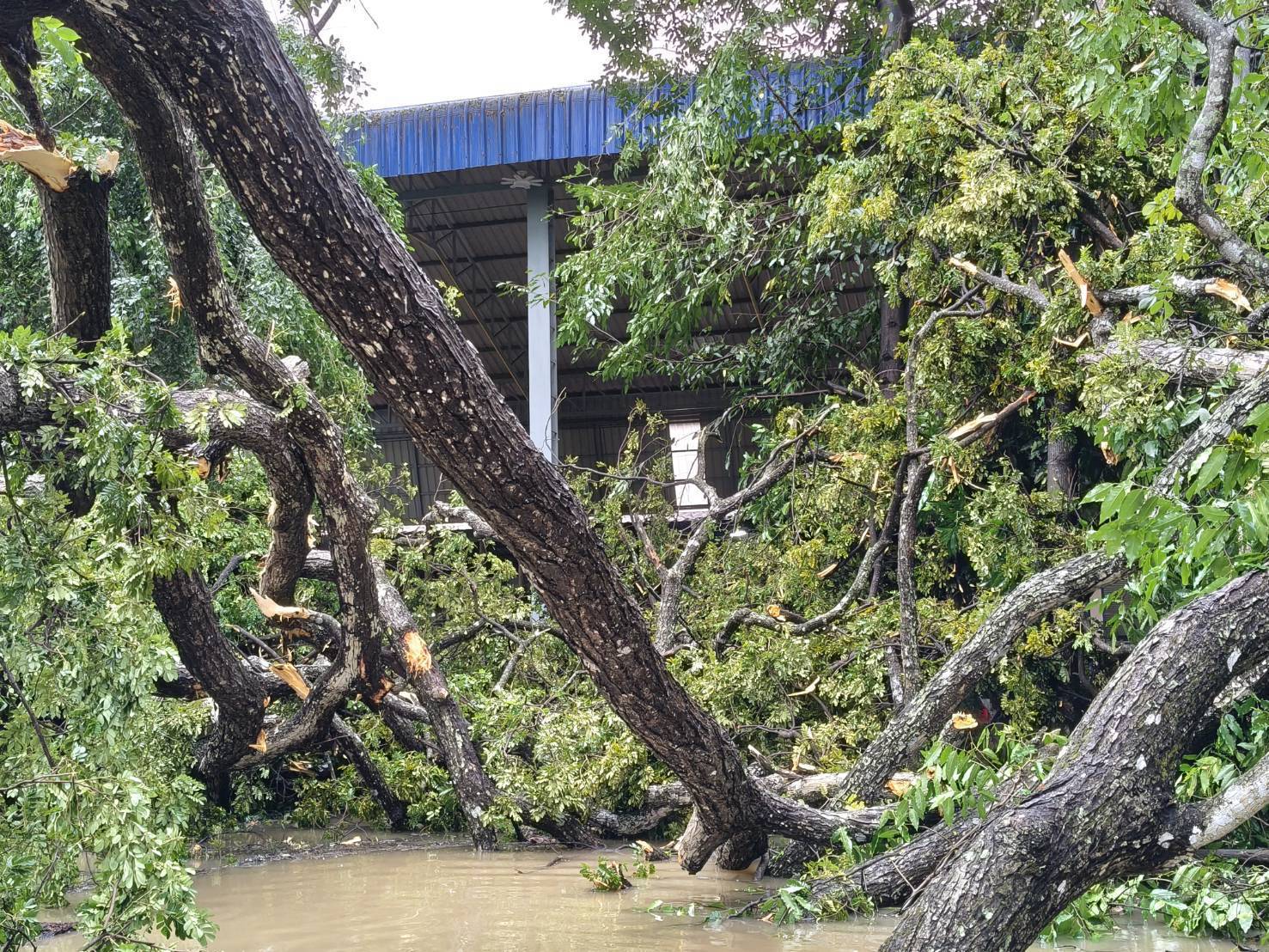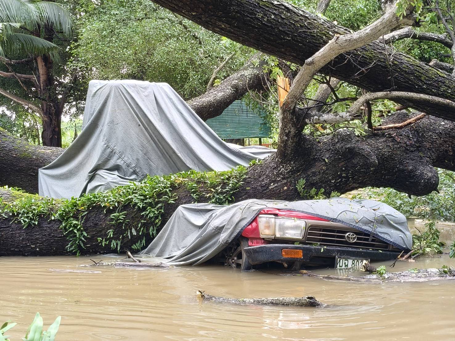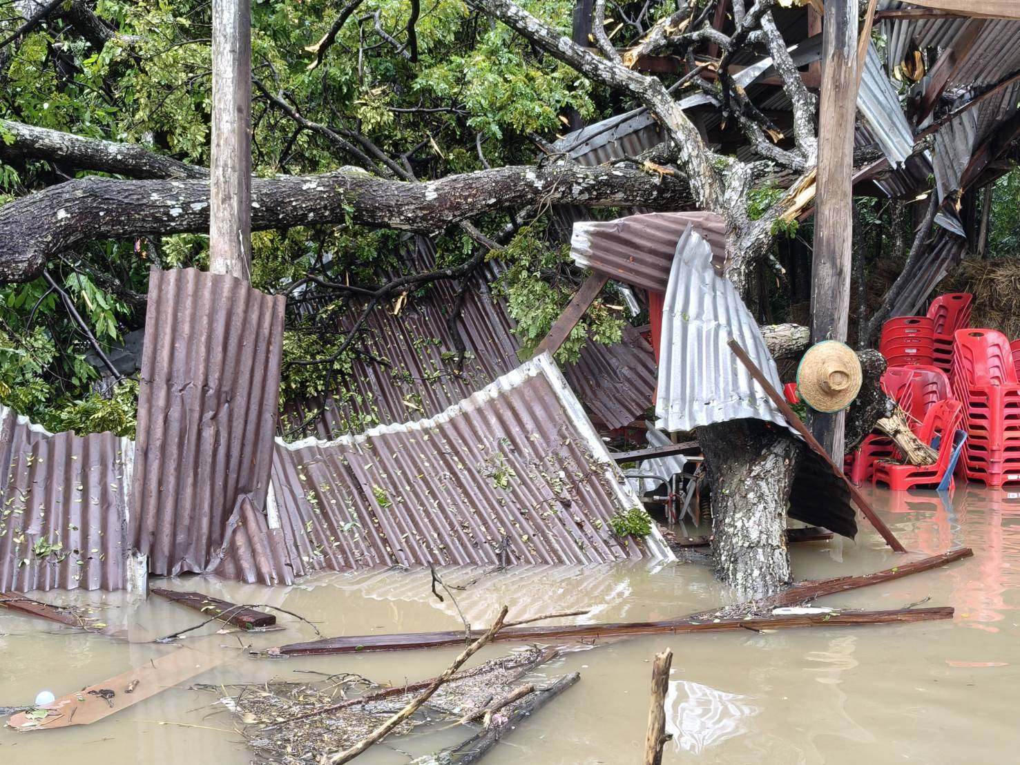 สุโขทัย ฝนตกหนักต่อเนื่อง น้ำท่วมวัดเผาศพไม่ได้ ต้นจามจุรีอายุร้อยปีโค่นทับรถพังยับ