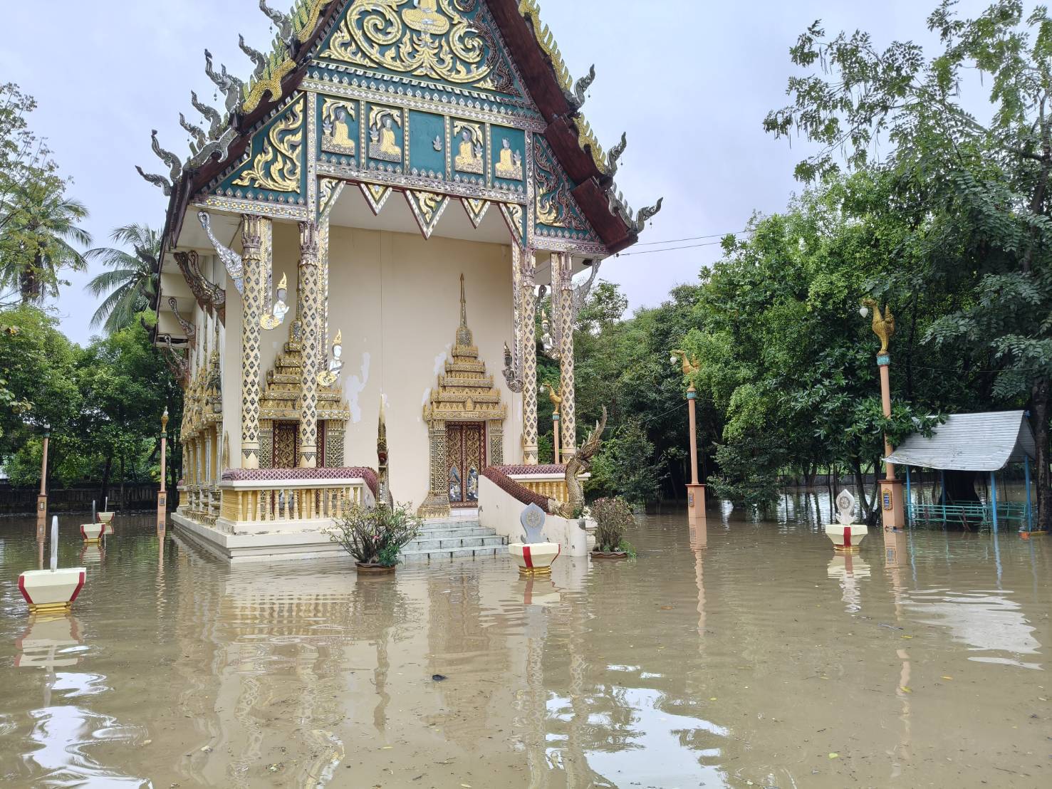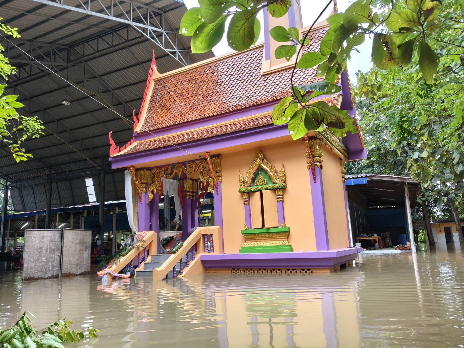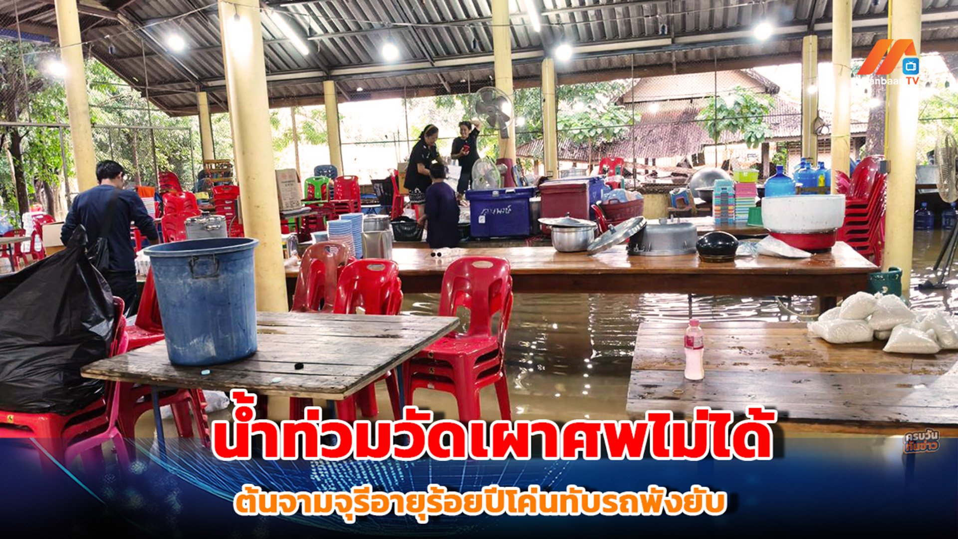 น้ำที่ท่วมสูงทำให้เมรุภายในวัดไม่สามารถใช้ประกอบพิธีฌาปนกิจได้ ต้องเลื่อนการเผาศพออกไปจนกว่าน้ำจะลด