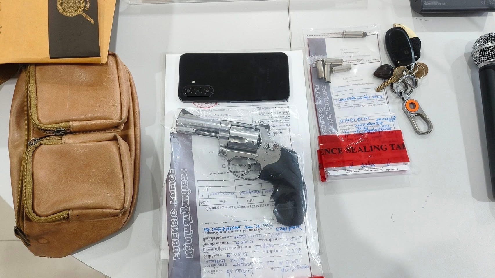 พร้อมรถยนต์คันที่ใช้หลบหนีและอาวุธปืนลูกโม่ .38 ที่ซุกอยู่ในกระเป๋าคาดเอว